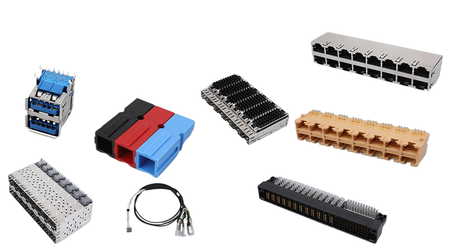 網(wǎng)絡(luò)連接器 (集成RJ45系列和普通RJ45系列)、高速連接器(SFP/QSFP/DSFP/CFP系列)、電源連接器、高速DAC和背板高速線纜組件、BTB連接器、網(wǎng)絡(luò)變壓器、RJ11連接器系列、USB&TYPE-C系列、精密五金件等。公司產(chǎn)品廣泛應(yīng)用于包括“5G/6G”在內(nèi)的網(wǎng)絡(luò)、通訊等行業(yè),并致力于滿足新能源汽車、高端裝備、智能顯示、軌道交通、機(jī)器人等高精尖終端領(lǐng)域?qū)B接器市場(chǎng)的需求。
